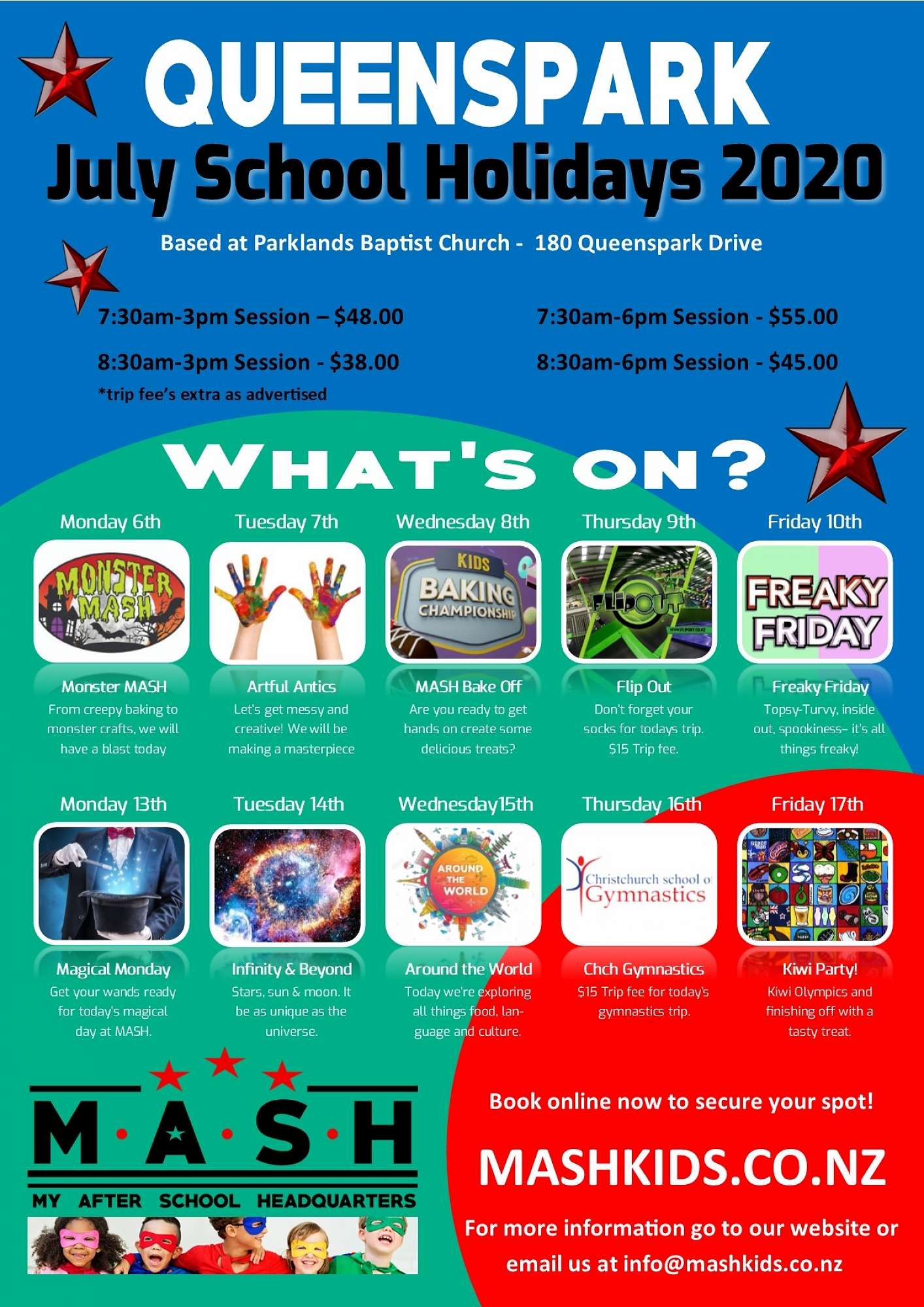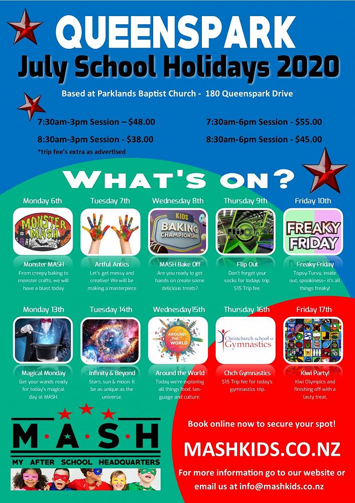 Please contact MASH directly if you would like to book in for the next school holiday programme. Ph: 03 366 9408 or email info@mashkids.co.nz