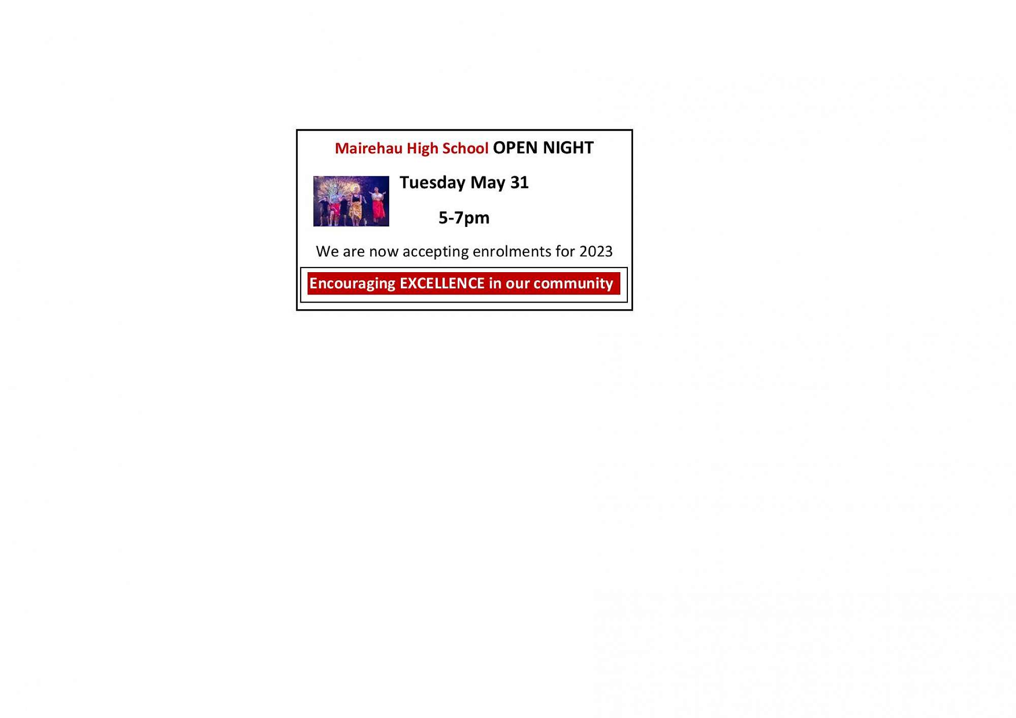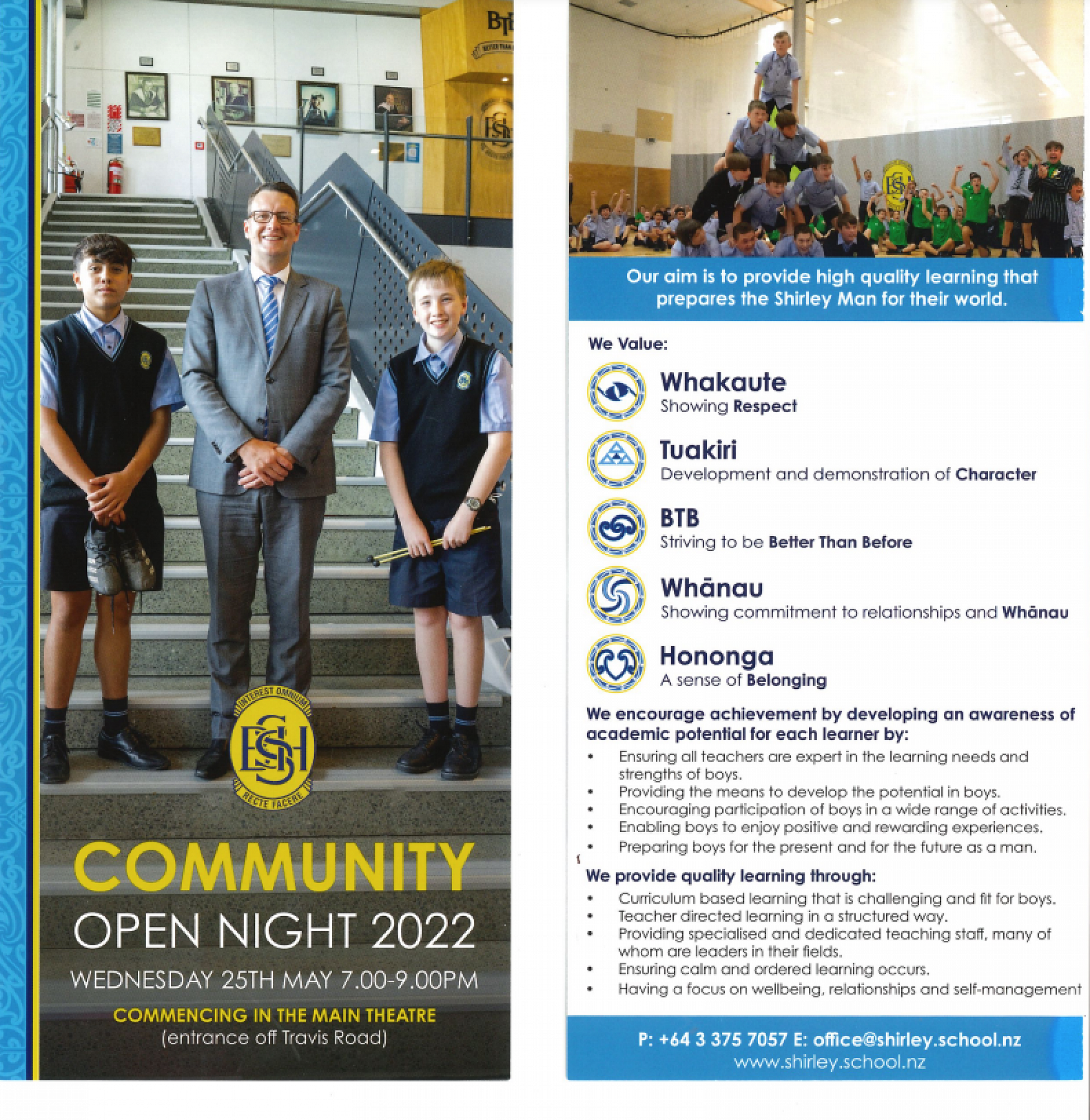 This event is in place of our normal Open Evening and is an opportunity to hear online from our new Tumuaki Mrs Catherine Law and several students. You will also be provided with links and information on how to access our amazing new virtual tour.