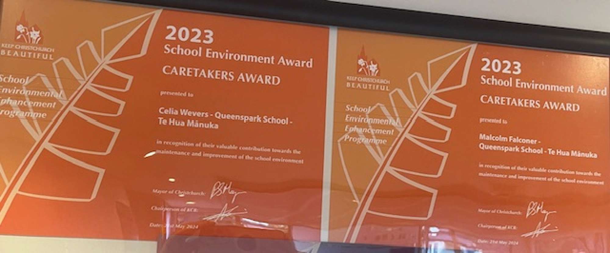 I recently attended the Keep NZ Beautiful Community Awards. Our previous Caretaker Malcolm and Grounds person Celia were invited along with myself to an afternoon of acknowledgement and recognition. Malcolm and Celia received the following awards for our school: