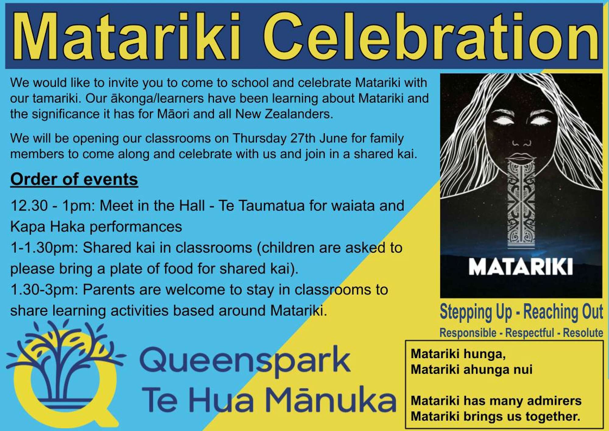 Thursday 27th - Matariki Celebration (1-3pm) meet in the school hall