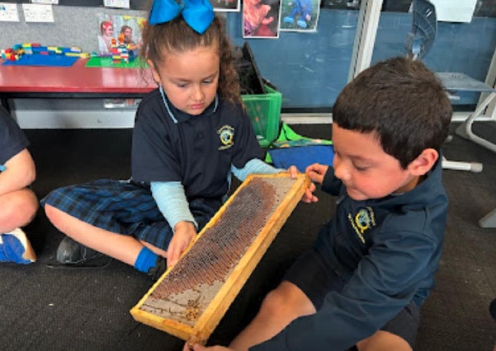 She has her own beehives in her backyard.She told us all about the jobs of the different bees in the hives. Then we got to role-play. I was the Guard bee who looked after the hive and the Queen. Jake was the Queen Bee and didn’t have to do anything. We got to touch a real honeycomb and then Kate gave us all some of the honey to try. It tasted very sweet and yummy. In the end we ran out of time. I wish she could have talked to us longer