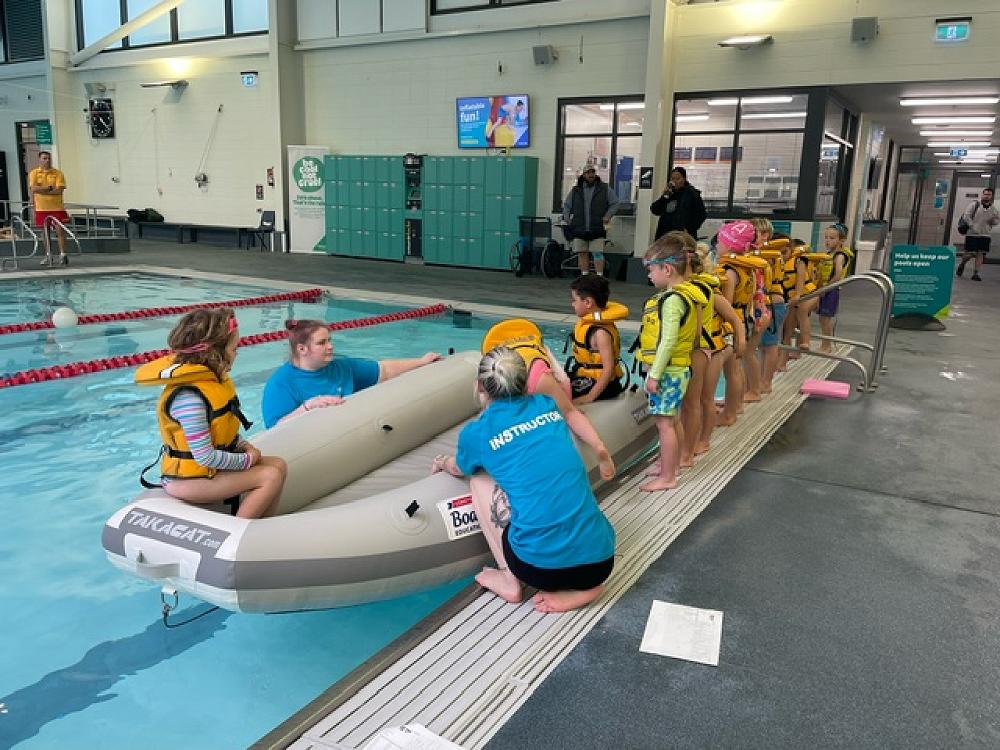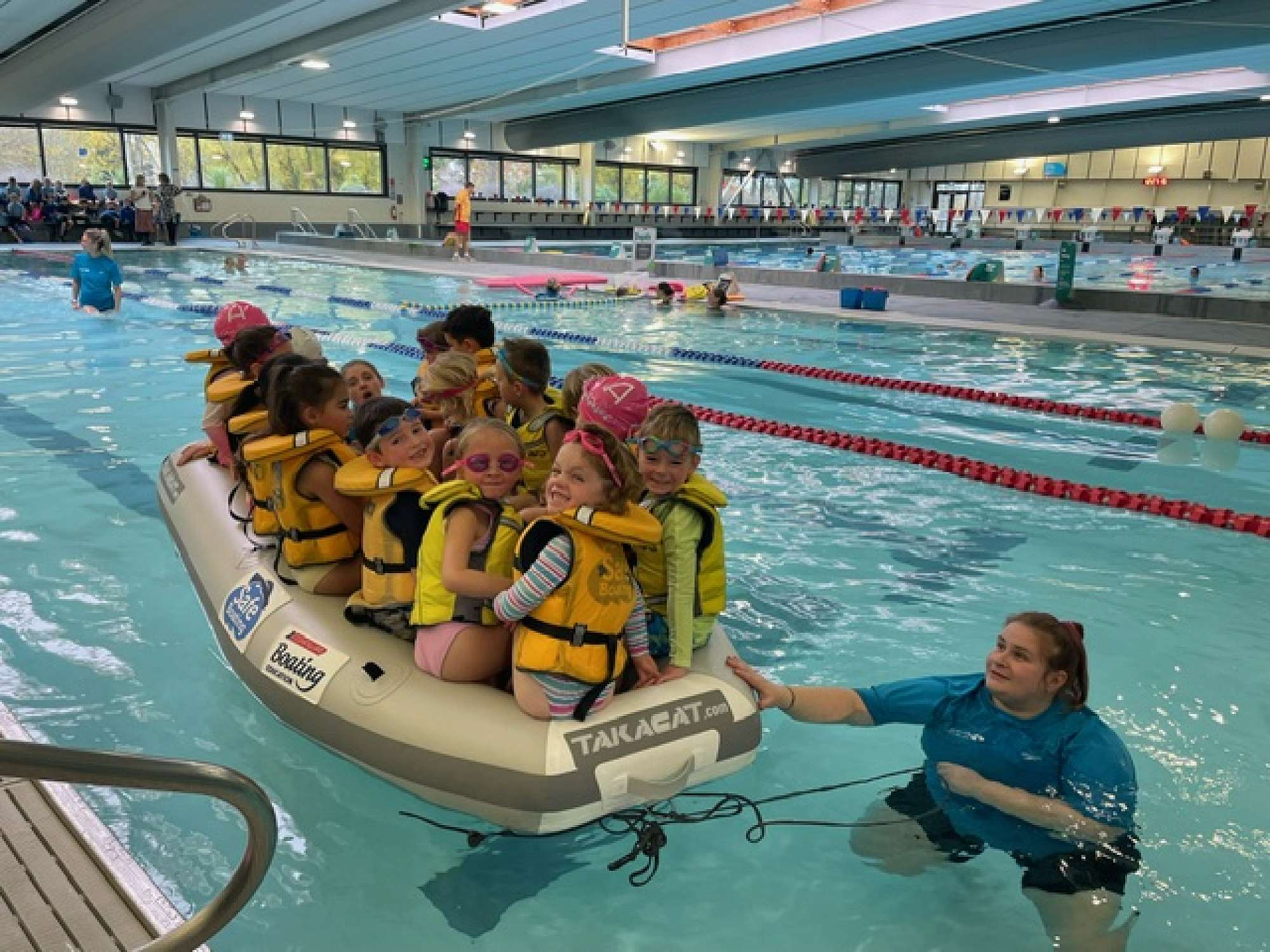 We had 2 water safety lessons where the children wore life jackets, jumped out of a lifeboat.