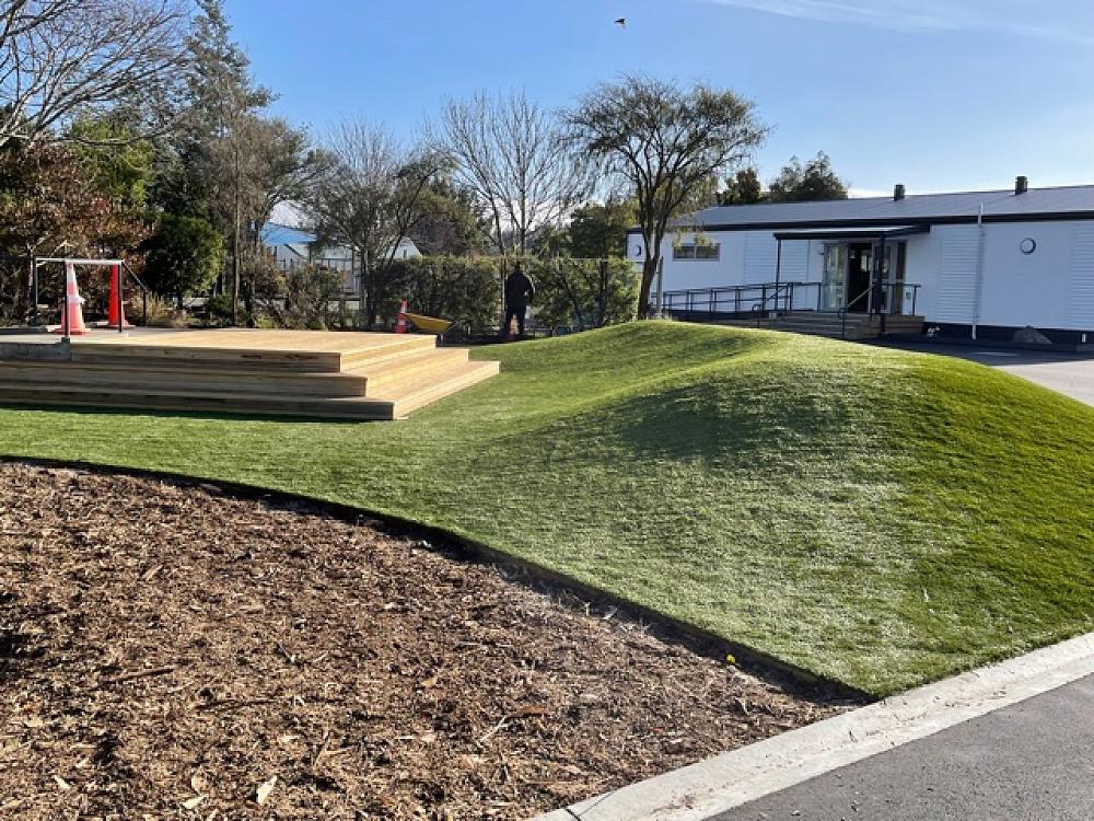 Developing a central amphitheatre / performance area in the middle part of the school complete with a stage and raised synthetic grassed audience area. Below is what we have developed so far 😀