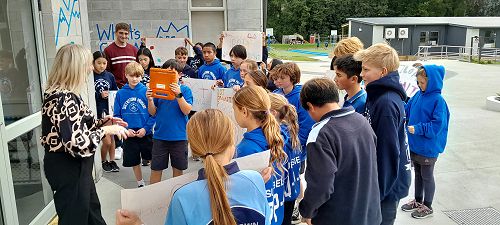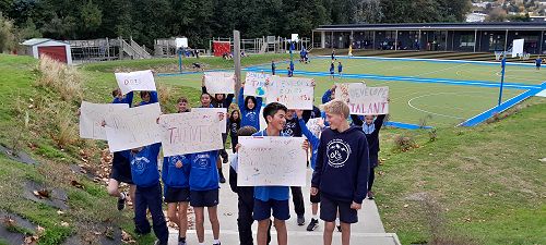 Room 21 has been learning about 'Hikoi' as part of the Yr 7/8 PBL around NZ History. This week they went on their own 'Hikoi' to spread their thoughts on the cancellation of DOTs this term. Mrs Cavanagh responded to our speaker and said there might be hope next term - the power of collective voice!