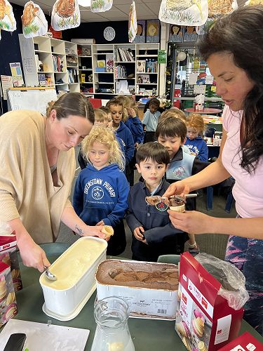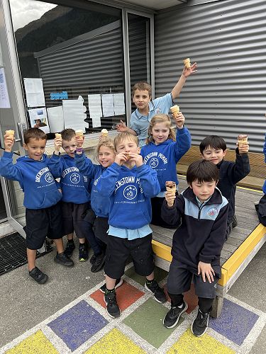 Students in Room 3 and Room 6 were treated to a yummy Lewis Road ice cream today in recognition of dressing our winning teachers Mel Oliver and Nic Price for the Polar Plunge event.