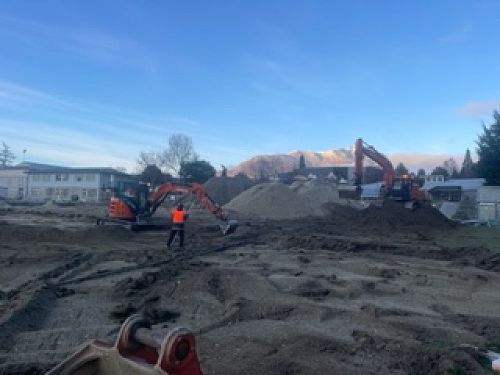 Wow, what a difference a week makes! It has been full steam ahead on the school building site. This week diggers have been starting to excavate an extensive amount of fill to ensure a level surface to build our new classrooms on. The dirt pile has got bigger and wider. In the background, the school property team has put in a lot of work as we critique landscaping plans and playground designs to settle on a final concept. A group of junior students worked with Miss Hart today, provided their thoughts on the designs, and offered some useful feedback.