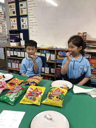 Two of our new students had fun tasting some of New Zealand's favourite lollies!