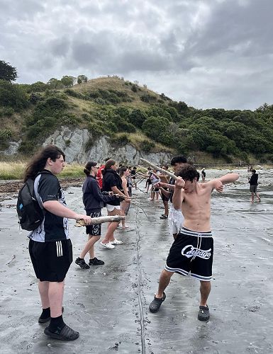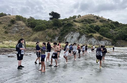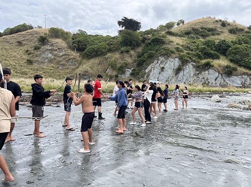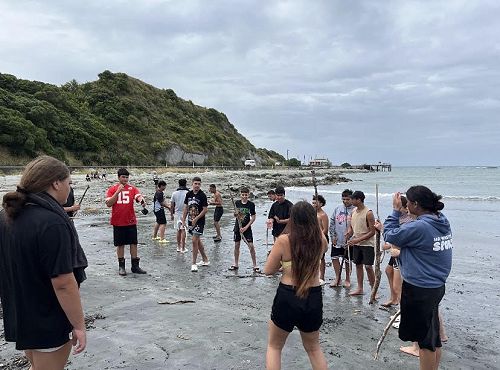 After arriving at Te Pā te Waka Uruao left kura at 9am to start their haerenga to Kaikoura. When arriving to the venue we were welcomed on as manuhiri to Takahanga marae. We were greeted with delicious food and were ready to get our beds all ready. We split the group into tane and wahine for our sleeping arrangements and quickly got them ready so that we could go to the beach.