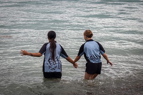 We started the morning with a pōwhiri to welcome everyone onto the marae. Our graduates were dressed in their number ones and adorned with korowai from their different whānau. Once the pōwhiri had concluded the year 13’s got changed and were briefed about what we would be doing next. As all our whānau gathered by the water awaiting our arrival the year 13’s made their way to a creek next to the marae to fetch a pebble. We then made our way to the water where we were asked to place the pebble in our mouths while we recited our pepeha and then submerged ourselves in the water. Once each pononga had their turn we were all presented with our kō that all had individual meanings and names depending on who we are. Most of us were left with tears pouring from our faces due to all the emotions surrounding this beautiful ceremony.