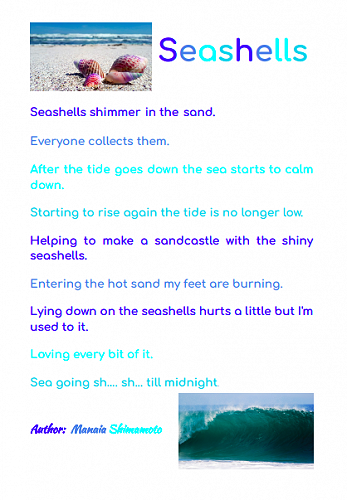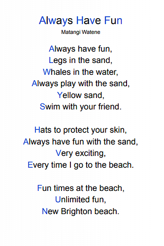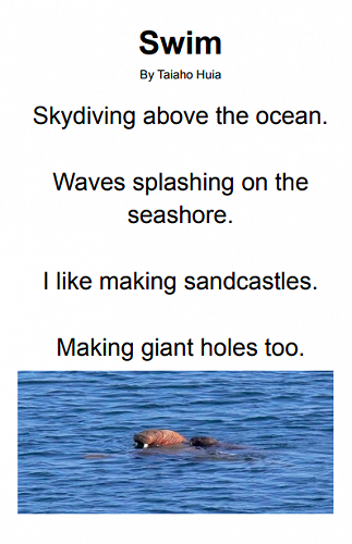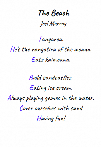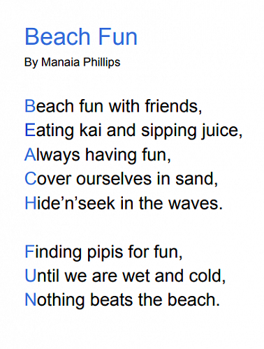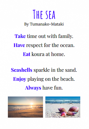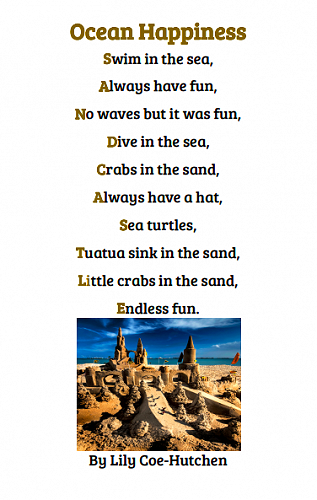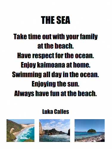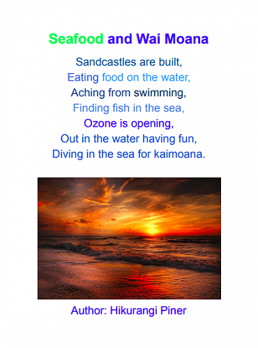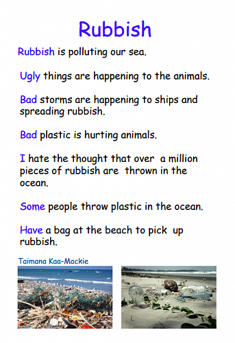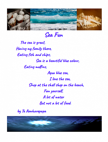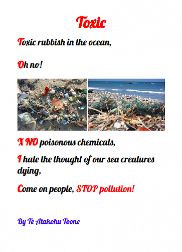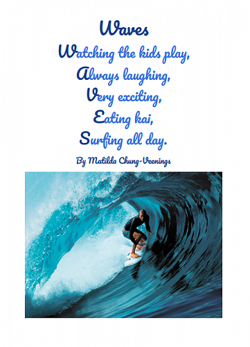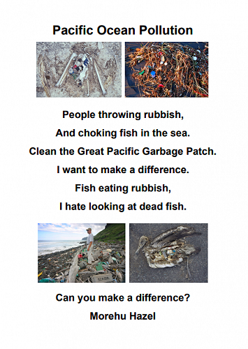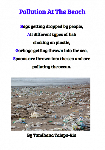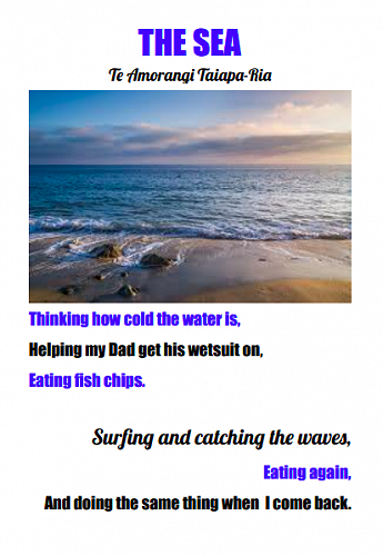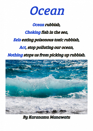 Here are some poems written by 7-10 year olds in Puna Waimarie about the sea, the ocean and pollution.
