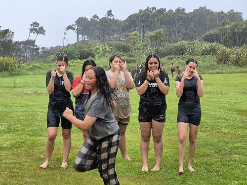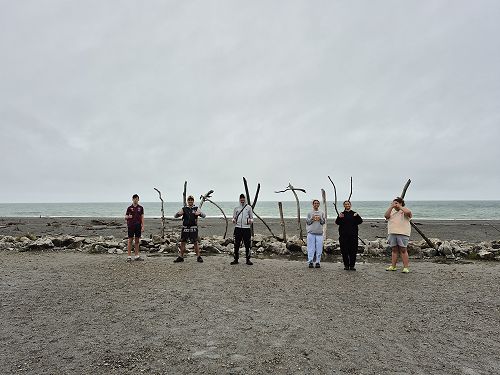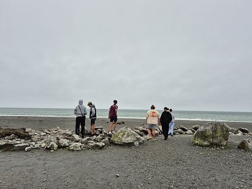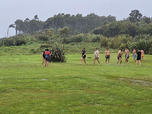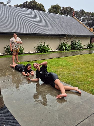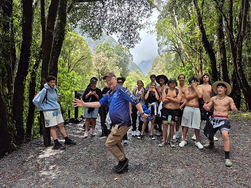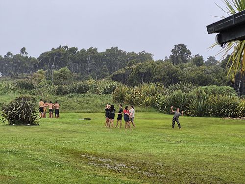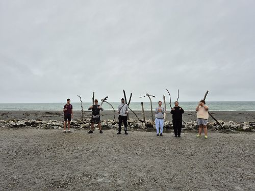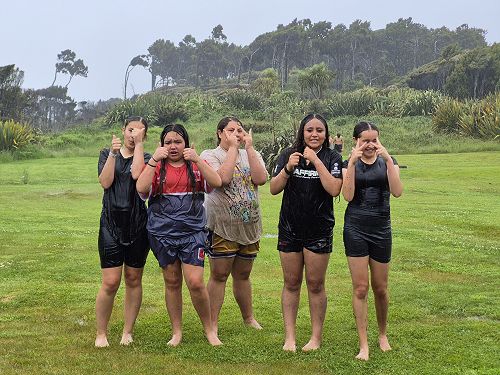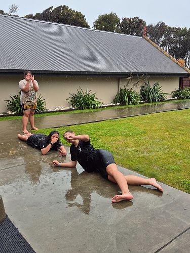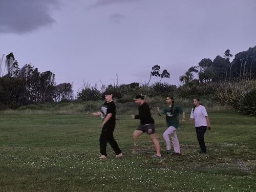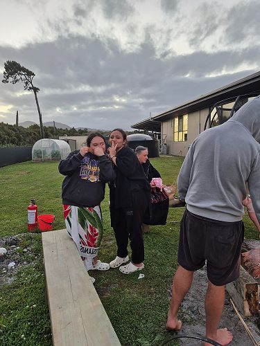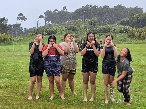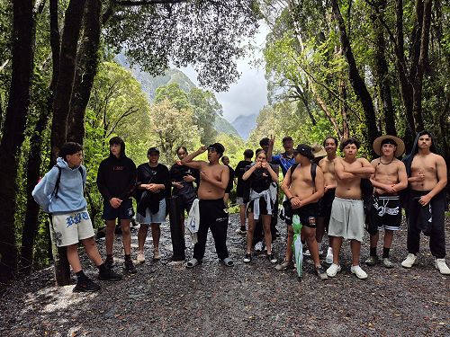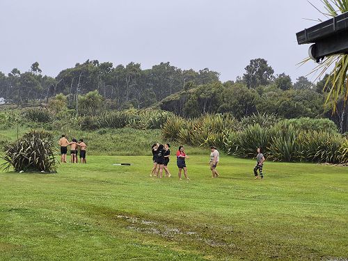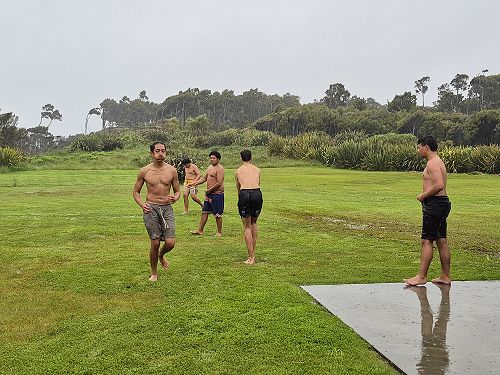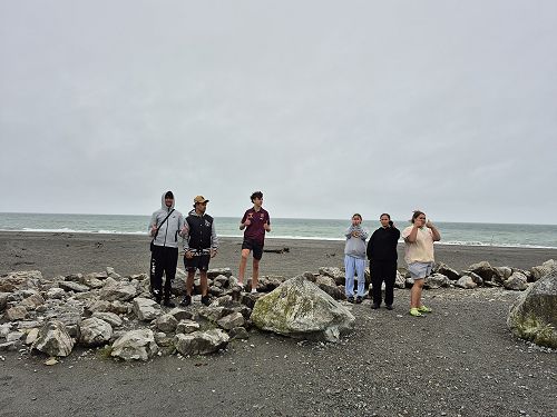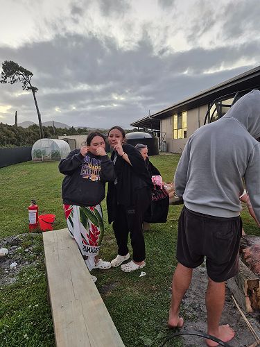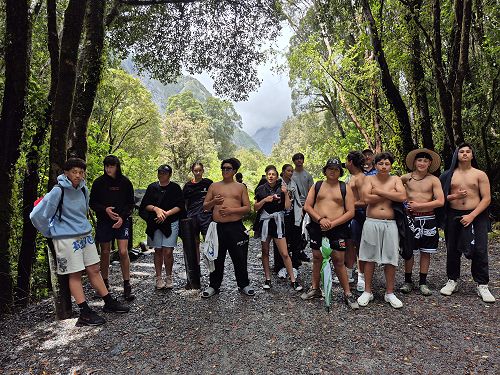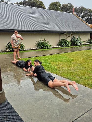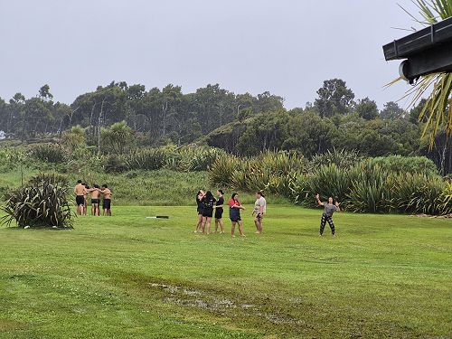 Each morning, everyone was up for some Mataora with Matua Dennis before enjoying their parakuihi, and making their lunch for the day. The first day was a trip down to Awarua, Haast Visitor Centre and a short hīkoi, before heading to a spot for some Pounamu hunting. Unfortunately, we were unable to go to the awa we had previously on our last trip, however we stopped at a section of beach to search. It was great to see the excitement on everyone's faces as they searched and searched. Everyone found some special pieces to bring home with them which was great. On our way back to the marae, we stopped again at Ship’s Creek where we were able to once again search along the river and beach for Pounamu. On returning back to the marae, pononga had some time to prepare a skit based on one of three stories, Poutini, Hinehukatere and Tuawe, and Rākaihautū. It was great to see pononga learn the story and retell it in their own ways. Before dinner, everyone made the best of the rain and created a slip n slide on the grass. In between the yelling, singing, sliding and haka, there was even a bit of a touch game.