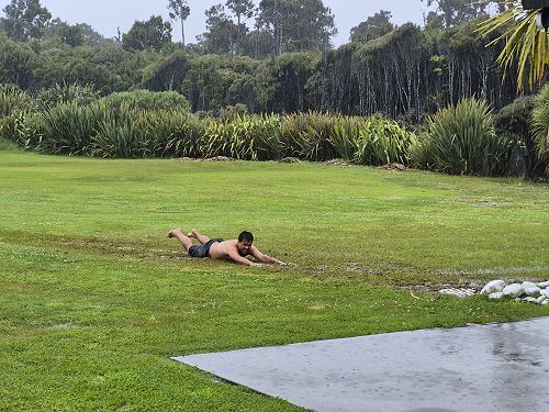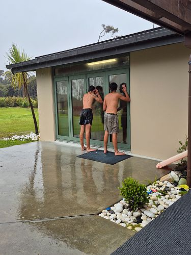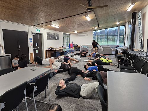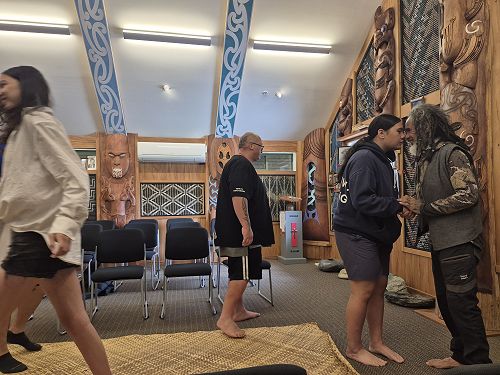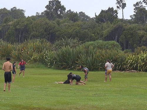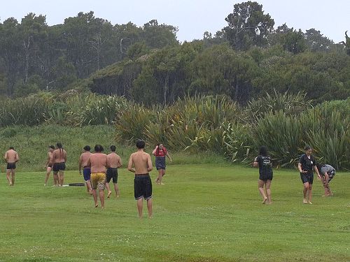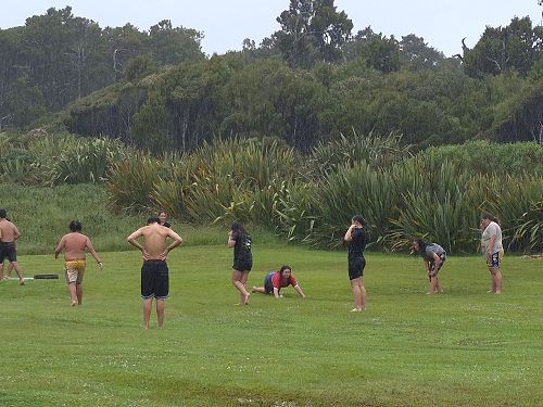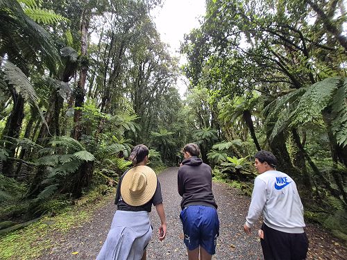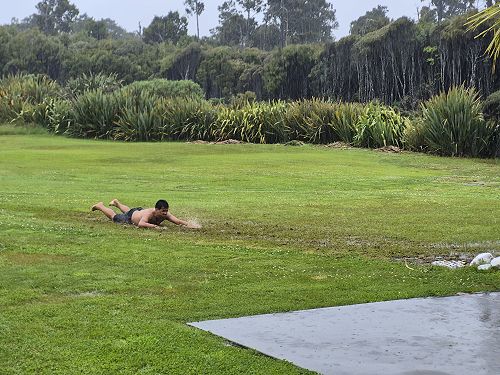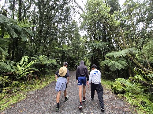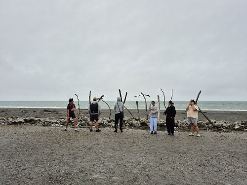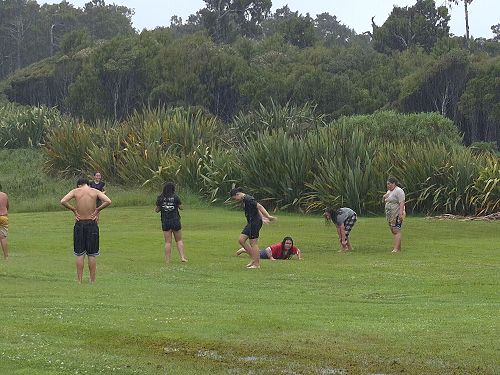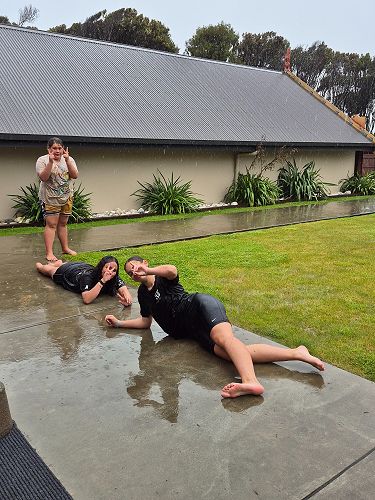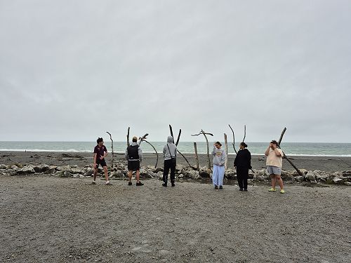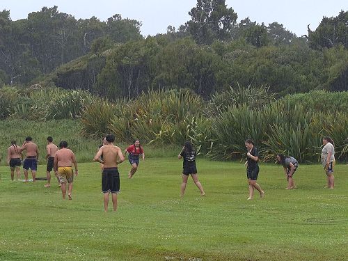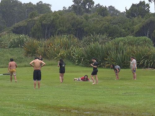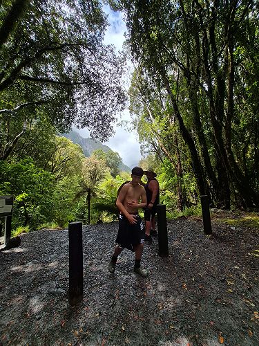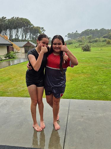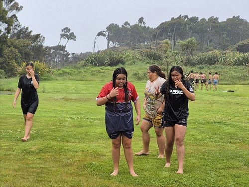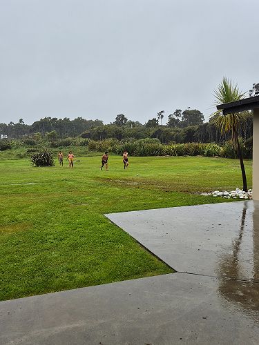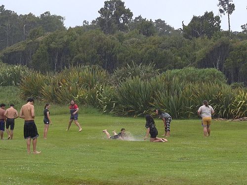 Each morning, everyone was up for some Mataora with Matua Dennis before enjoying their parakuihi, and making their lunch for the day. The first day was a trip down to Awarua, Haast Visitor Centre and a short hīkoi, before heading to a spot for some Pounamu hunting. Unfortunately, we were unable to go to the awa we had previously on our last trip, however we stopped at a section of beach to search. It was great to see the excitement on everyone's faces as they searched and searched. Everyone found some special pieces to bring home with them which was great. On our way back to the marae, we stopped again at Ship’s Creek where we were able to once again search along the river and beach for Pounamu. On returning back to the marae, pononga had some time to prepare a skit based on one of three stories, Poutini, Hinehukatere and Tuawe, and Rākaihautū. It was great to see pononga learn the story and retell it in their own ways. Before dinner, everyone made the best of the rain and created a slip n slide on the grass. In between the yelling, singing, sliding and haka, there was even a bit of a touch game.