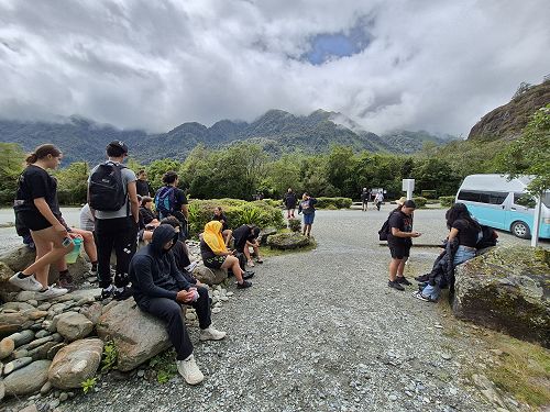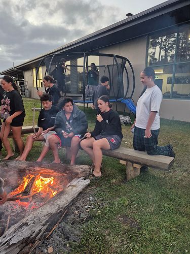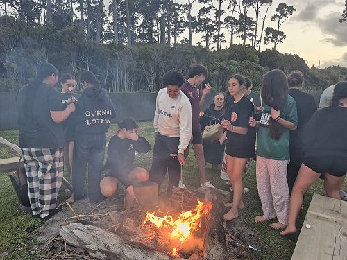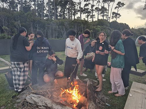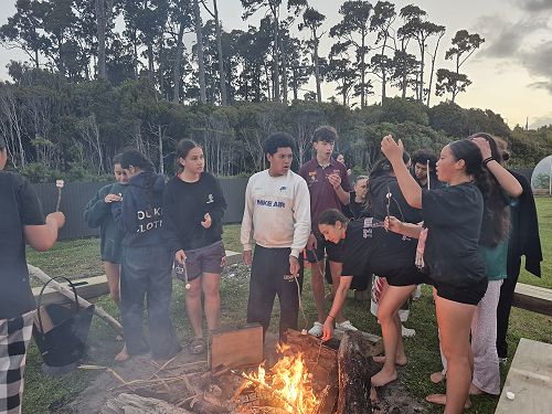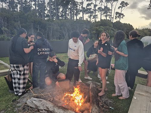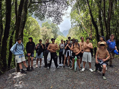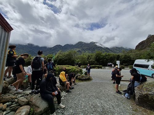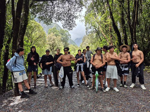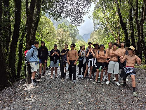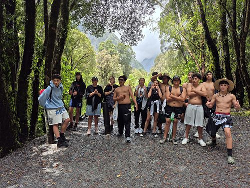 After mataora, breakfast, mahi and making our lunches, we were off to Ka roimata o Hinehukatere and Te moeka o Tuawe. Unfortunately, the clouds covered the glaciers so we were unable to see them. After heading back to the marae, some were lucky to go with Matua Jeff to the Makaawhio River to search for Aotea Pounamu. Aotea Pounamu can only be found in one river and some pononga were very lucky finding some. After dinner, Whaea Dalice got the bonfire going for some smores by the fire. At bedtime, pononga were sung some waiata by Matua Jodi which was a great way to finish our day.