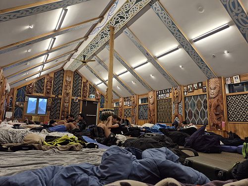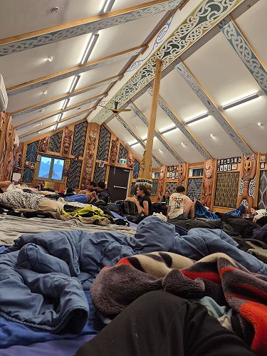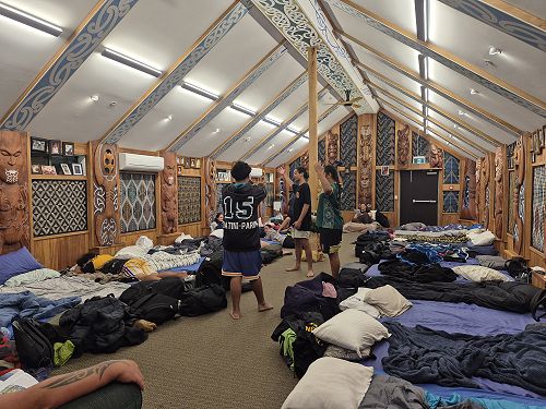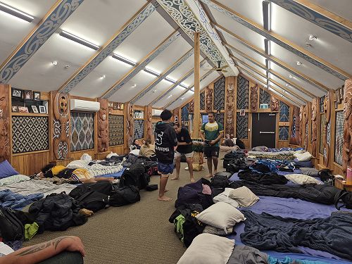 Makaawhio Marae is absolutely beautiful, our pononga and kaimahi were warmly welcomed and treated to dinner after the pōwhiri, before gathering in the wharenui for some stories of the area from Matua Jeff. Of course, our pononga were eager to play spotlight before bed.