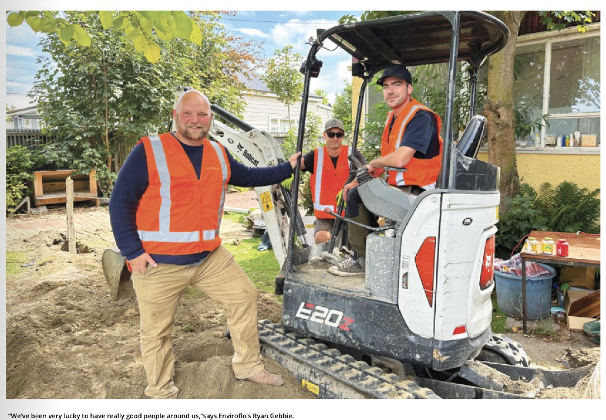 - Enviroflo primarily focusses on EQC repairs, residential and commercial drain laying, with some civil work.