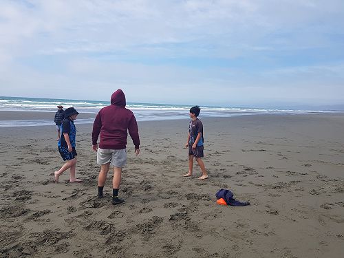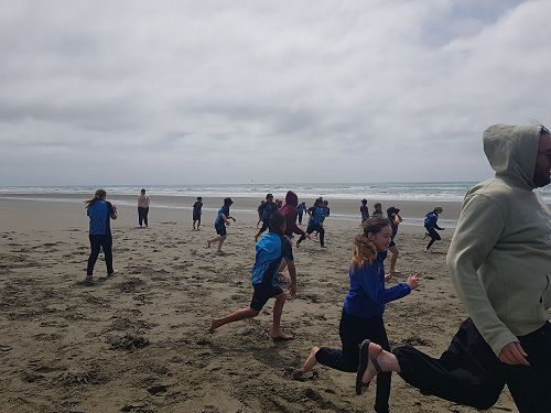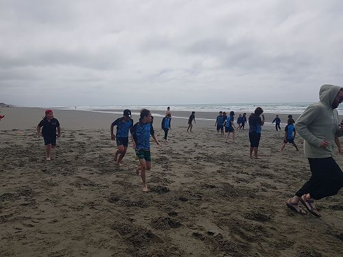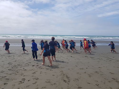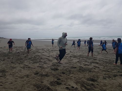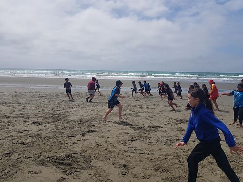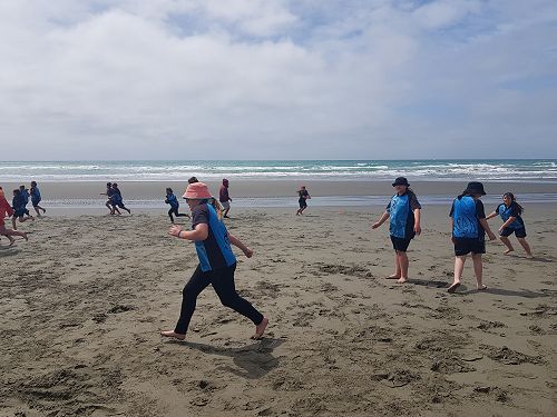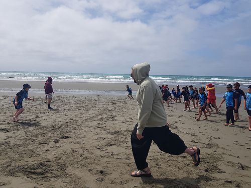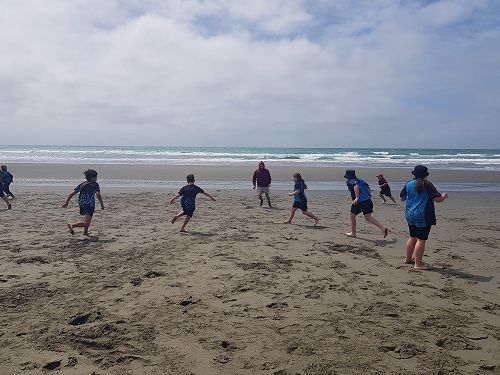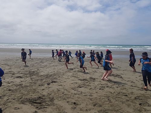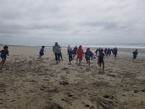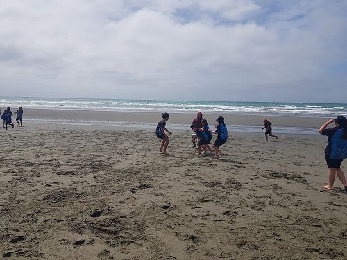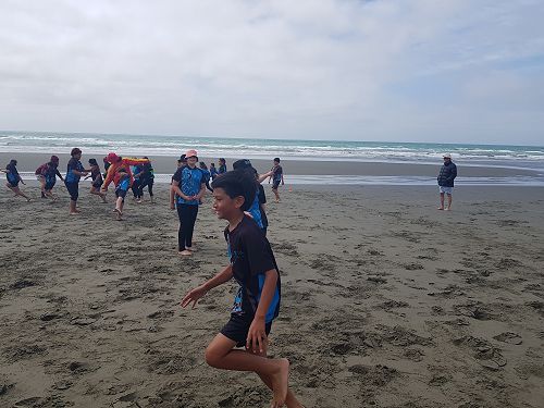After a quick lesson on rips and how to find them, we were ready. Rips are always around wharfs, rocks and rivers as this is where the water is flowing back out. Rips can be recognised by the colour of the water and also there are normally no waves. This is because when the waves come in, the rip is taking the water back out, this is why it is deep and the water is often stirred up. If we ever get stuck in a rip, just remember the three R’s, Relax, Raise your arm, and Ride the rip. Once free, you can use the waves to come back to shore. In the water, tamariki had the opportunity to learn how to run in the ocean, dolphin dive under the waves, and even learnt to body surf and catch waves on the boogie board.