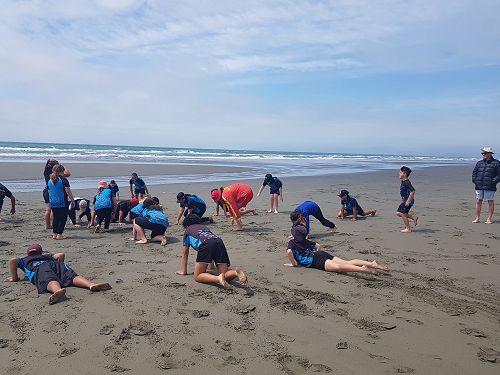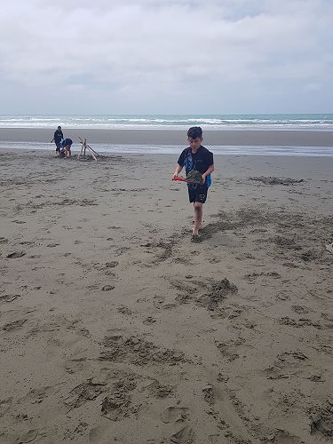 To start the day, they got to have a tour of the Spencer Park Surf Life Saving Club which included the First Aid Room and Observation Area, which included getting the use of the binoculars and viewing all the first aid gear that they are prepared to use. Then it was down to the boards, they got to see boogie boards, and both racing and rescue boards. They learnt that if you are learning you start on foam and then progress to fibreglass, as you get better, you can also get bigger boards. They also learnt that the rescue board can save up to 12 people at one time! Then it was on to the boats, IRB or Inflatable Rescue Boat. These were fully equipped with helmets, life jackets, rescue floats and even a knife. After a quick paramanawa break, it was time to head to the beach, playing games in the sand, and having a building, digging and maunga competition kept them busy and engaged.