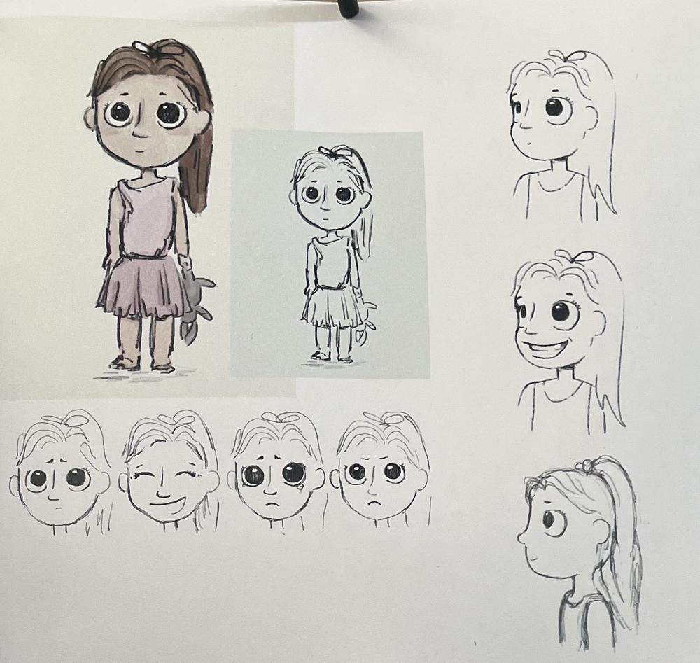 In design, Kate is writing and illustrating an original children's story. The premise of the story is about a young girl and her experience with her older siblings, growing up, leaving home and finishing high school. It explores ideas of loneliness, isolation and what it is like to become the sole child in a household. Kate is currently drawing concepts for characters and possible environments, before starting to generate page layouts and the integration of type.