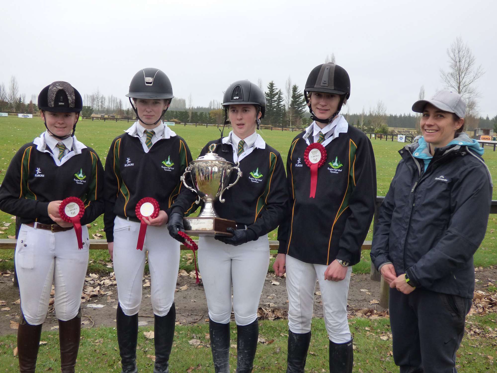 Rangiora High School One day eventing team took out the Canterbury Secondary Schools' ODE championships at McLean’s Island. Sitting 7th after dressage, the team had to endure tough conditions going into the show jumping ring after a substantial amount of rain. The cross country was more technical than other years and had some tricky combinations to challenge all of the riders.