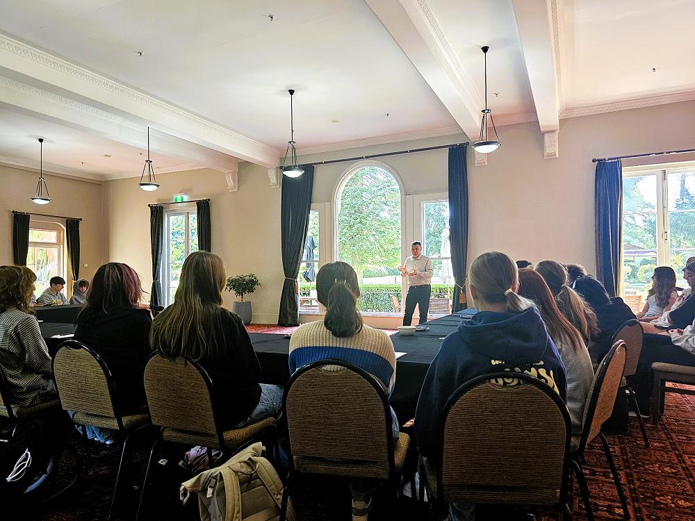 Our first stop was the Hanmer Springs Hotel where we got to listen to speeches from Simon, a manager working at the hotel, as well as Ollie, a member of staff from Hanmer Springs Thermal Pools. These two men spoke to us in great detail about their roles within the tourism industry as well as ways in which us students could get involved working in tourism if we so please. These speeches were both very informative and were a great way to start the day. Before leaving we were even able to snap a quick photo outside of the hotel.