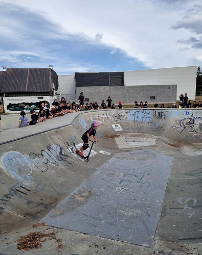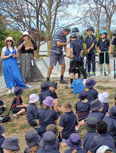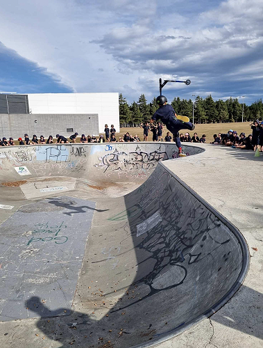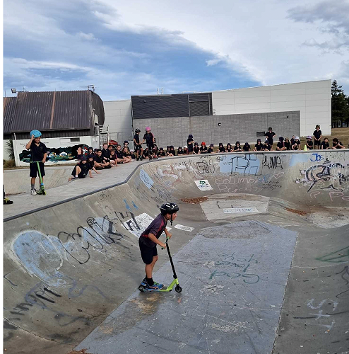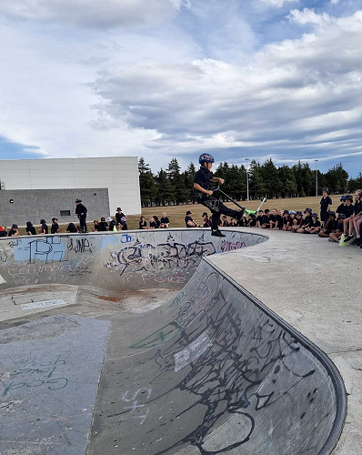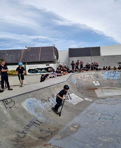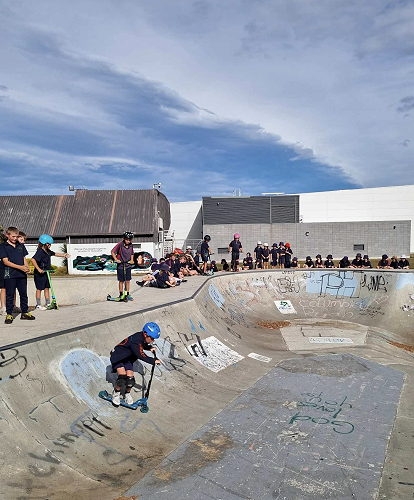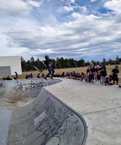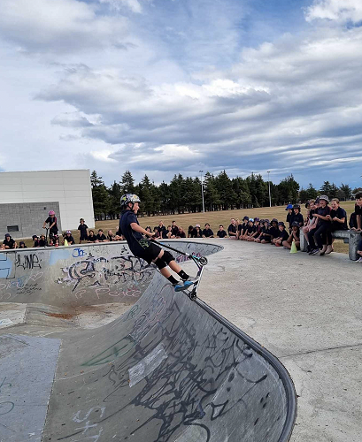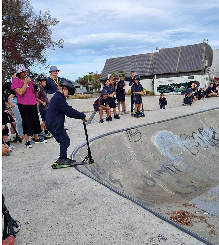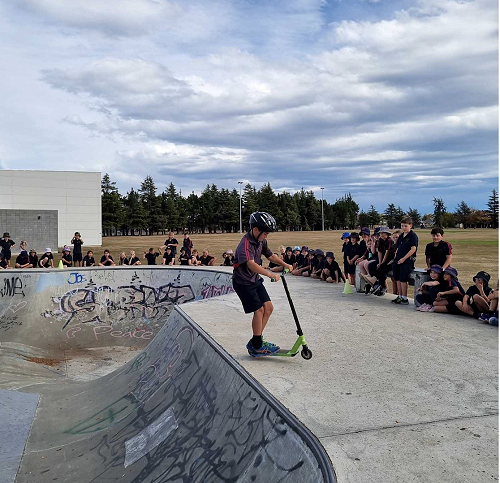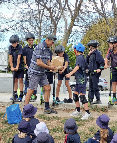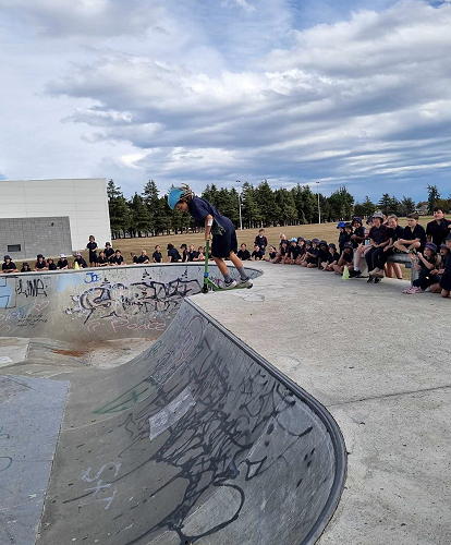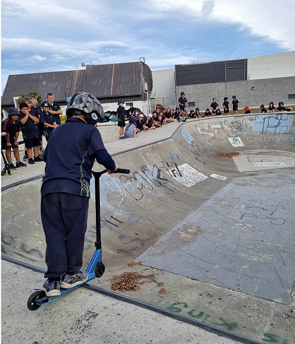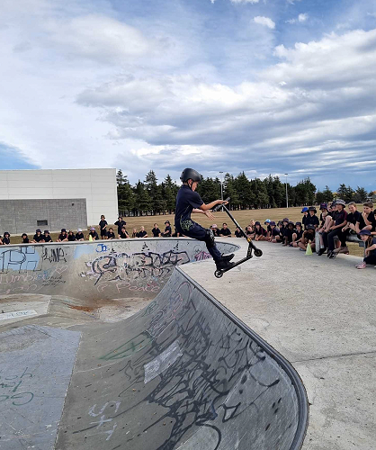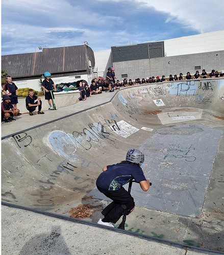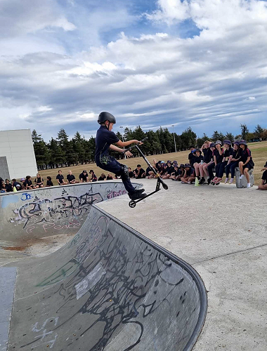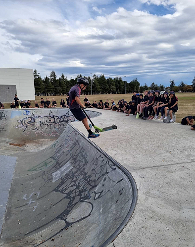 On Tuesday afternoon there was a school scooter trick competition. The afternoon had 3 groups of competitors. The year 6 - 8 category, the year 5 category and the year 4 category too.