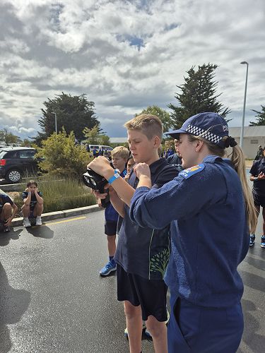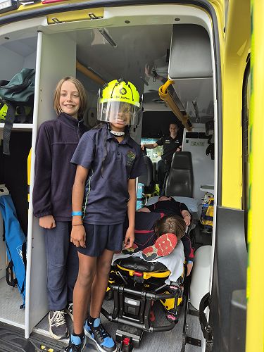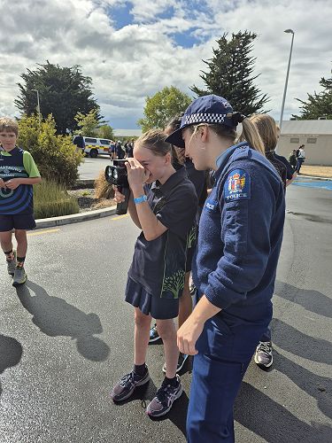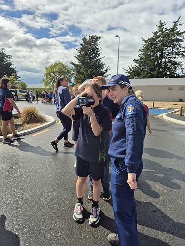 We arrived in time to watch the morning session running their finals and the buzz was quickly in the air! Korbyn, Zarah, Finn, CJ, Riley, James, Toby and Isabella spent the day rotating through a range of awesome workshops which gave them insight into the emergency responders of our community. We were able to try on police gear, race against the speed camera, and practice our CPR skills.