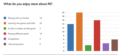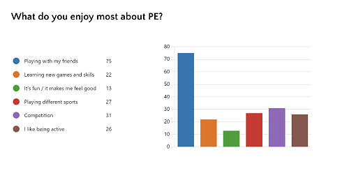 Students also said they enjoy learning new games and skills, playing different sports and playing with their friends in PE.