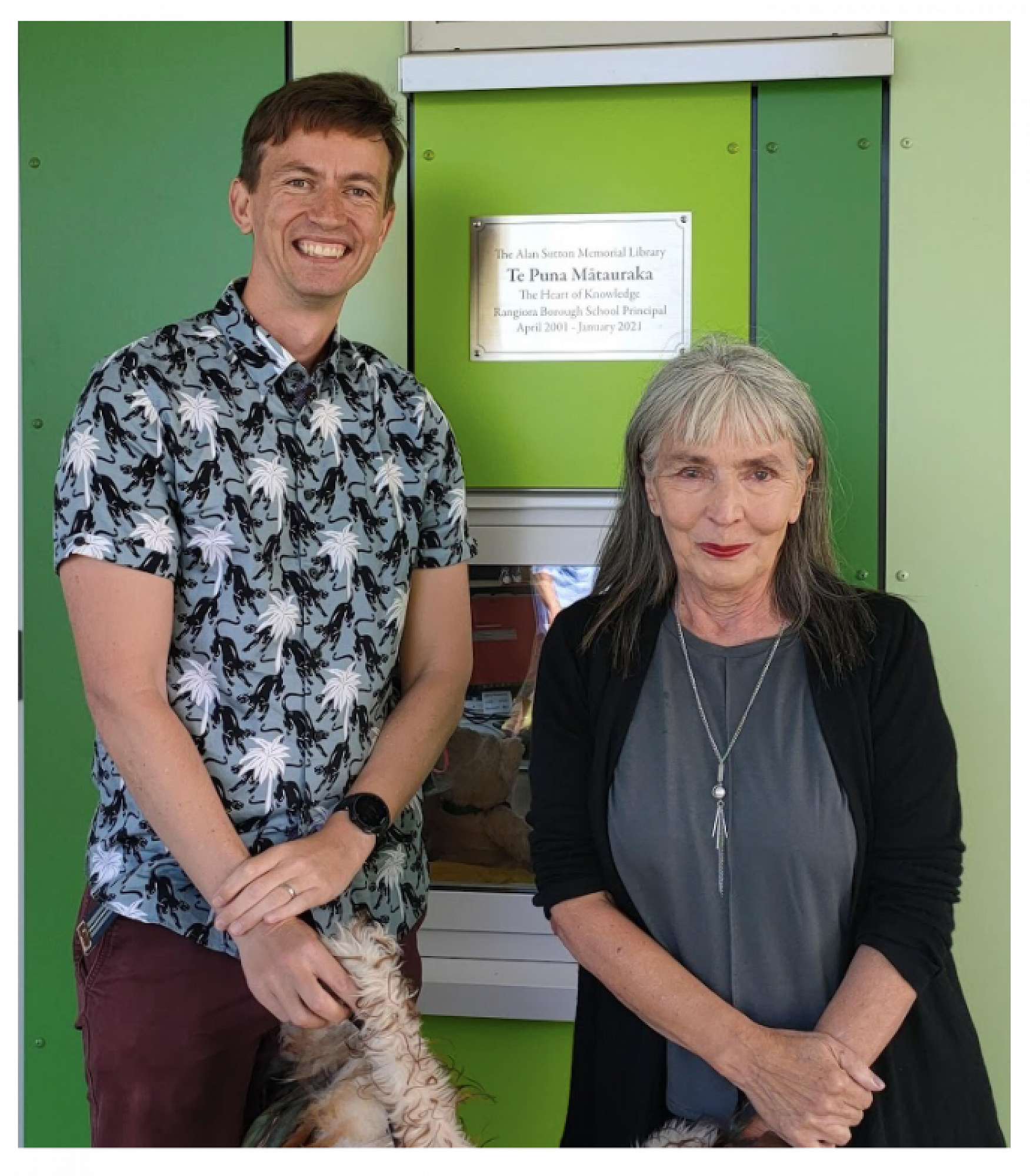 Unveiling the Alan Sutton Memorial Library - Te Puna Mātauraka Plaque by Dean and Jill Sutton.