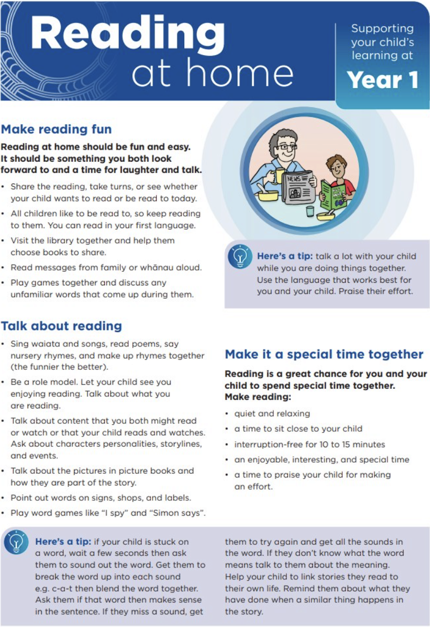 The Ministry of Education provides a range of whānau-friendly resources to support children's learning in reading, writing, and maths at home. These resources offer simple, practical activities designed to reinforce what ākonga are learning at school, helping them build confidence and stay engaged.
