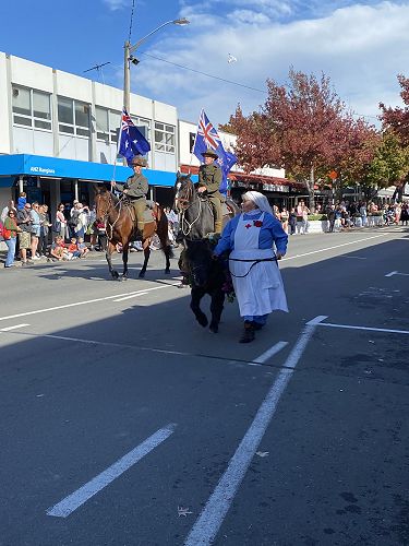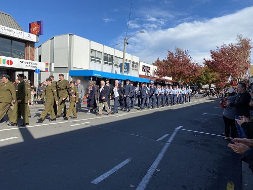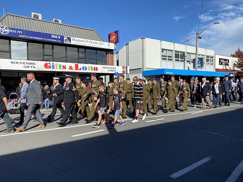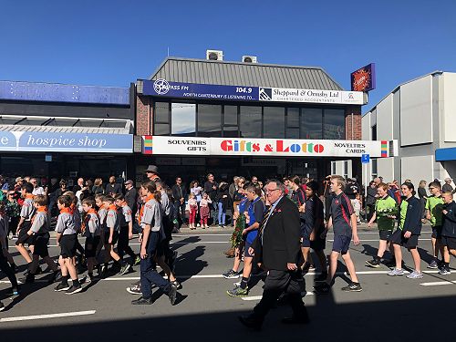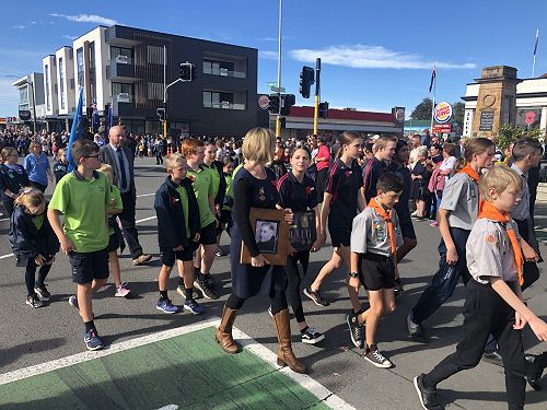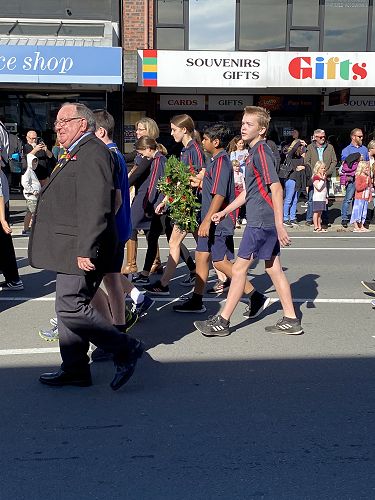 I would like to thank the students and parents of above who took time during their holiday break to represent Rangiora Borough. It was lovely to walk with them and experience the parade from a different viewpoint. Thanks must also go to Sandi Harnett and family for making our wreath on behalf of our school.
