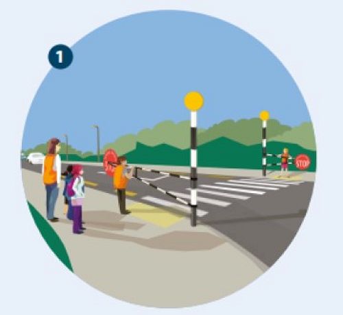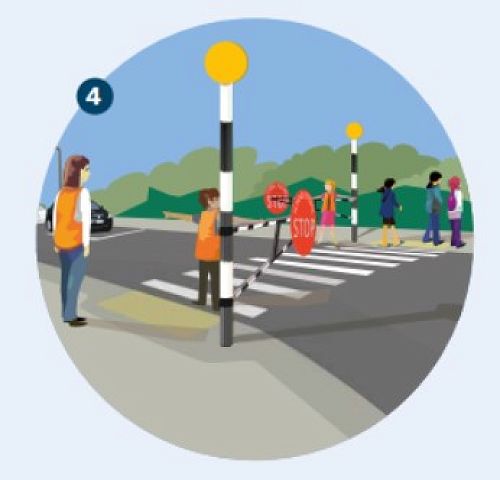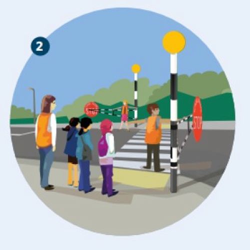- Any pedestrian waiting to cross must stand well back from the STOP sign so that the patrol members have a clear view of the road. The patrol member positioned at the kindergarten roadside is the leader for calling the kea crossing commands.
