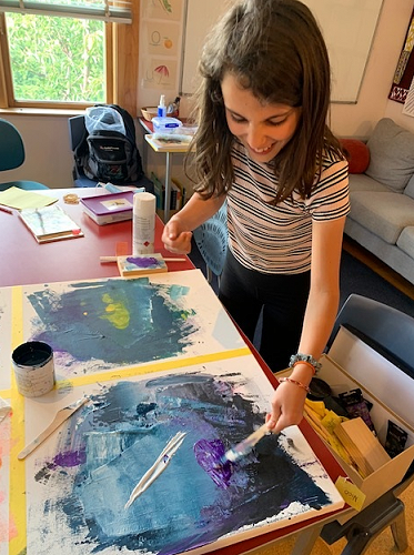 The idea was to teach our children in the Lower School how wonderful art can be if they create it themselves, how relaxing art can be if they are stressed, sad, or just have an emotional day. I wanted to teach them how colorful our world can be even on grey day. But with broken/not working brushes - difficult.