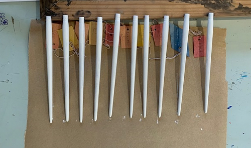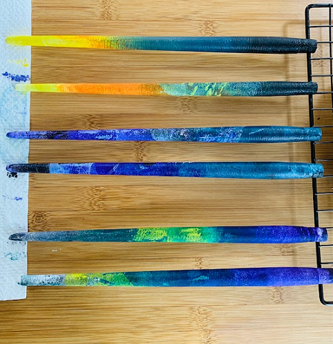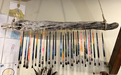 I was not very tempted to just sand and oil them as I thought I need to find something which is exciting, new and absolutely unique for the kids - I needed to come up with an idea that every student would engage with, that children would feel proud of, almost they would want to own the brush, look after and care for it.