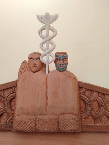 This carved figure is Awanuiarangi, who is the ancestor of our local iwi Te Ati Awa.