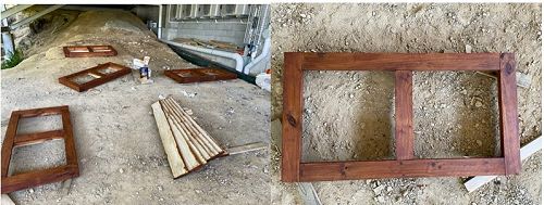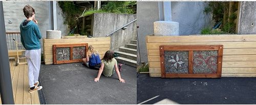 Which is all very Mathsy, but it was for a good purpose. They were working out how much timber and how many construction screws would be needed to make timber frames for the mosaic tiles that were leaning against the fence opposite the gym for the last few years.