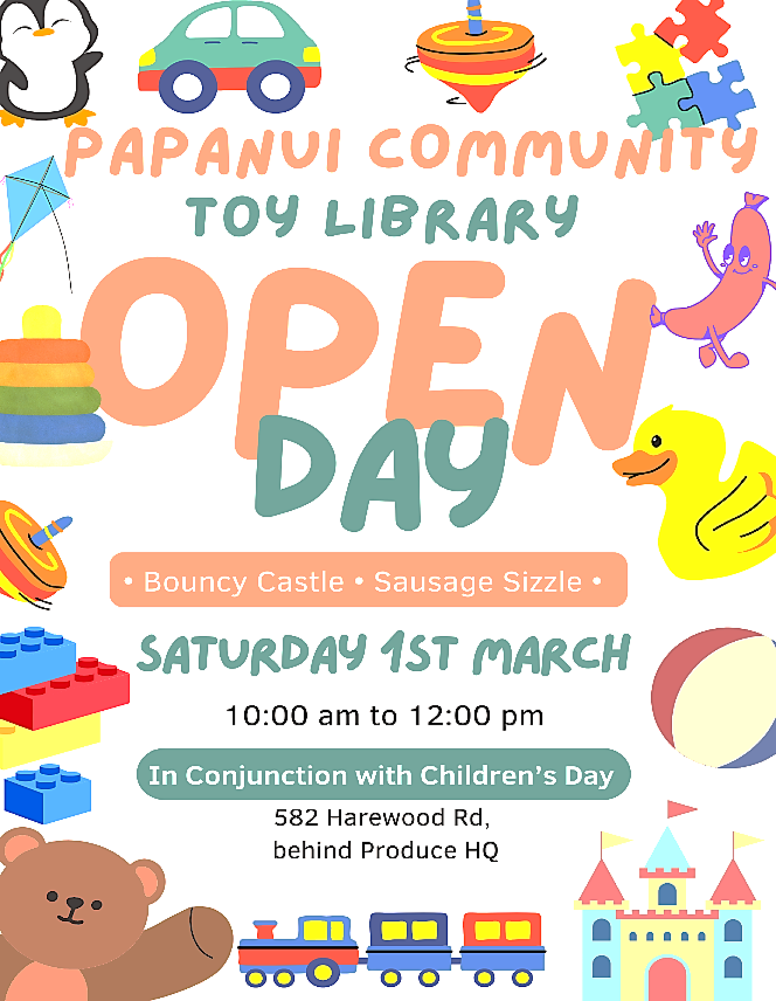 The Papanui Community Toy Library is hosting an Open Day on Saturday 1 March, from 10am-12pm. This is to celebrate Children's Day taking place on Sunday 2 March.