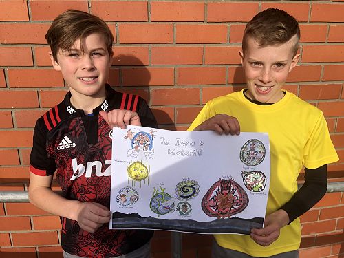 Together these stars encourage reflection on the past, and planning for the future as well as celebrating with the people you have around you. Ka pai Liam and Ollie! We love all the detail and mahi that you have put into this fantastic poster!