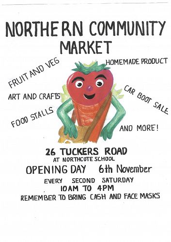 Northern Community Market - Every second Saturday, 10am to 4pm. Opening day 6 November. Remember to bring your cash and face masks. See attached flyer.