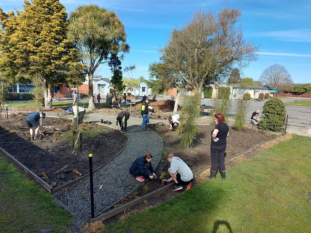 Thanks once again to everyone who helped us with this, Sarah Caldwell who coordinated the project and Francis for his continued mahi and preparation. Thanks also to Tim and Andrea from our PTA for feeding the workers and to the Caldwell family who donated the punga and the two additional lancewoods which were planted earlier this week.