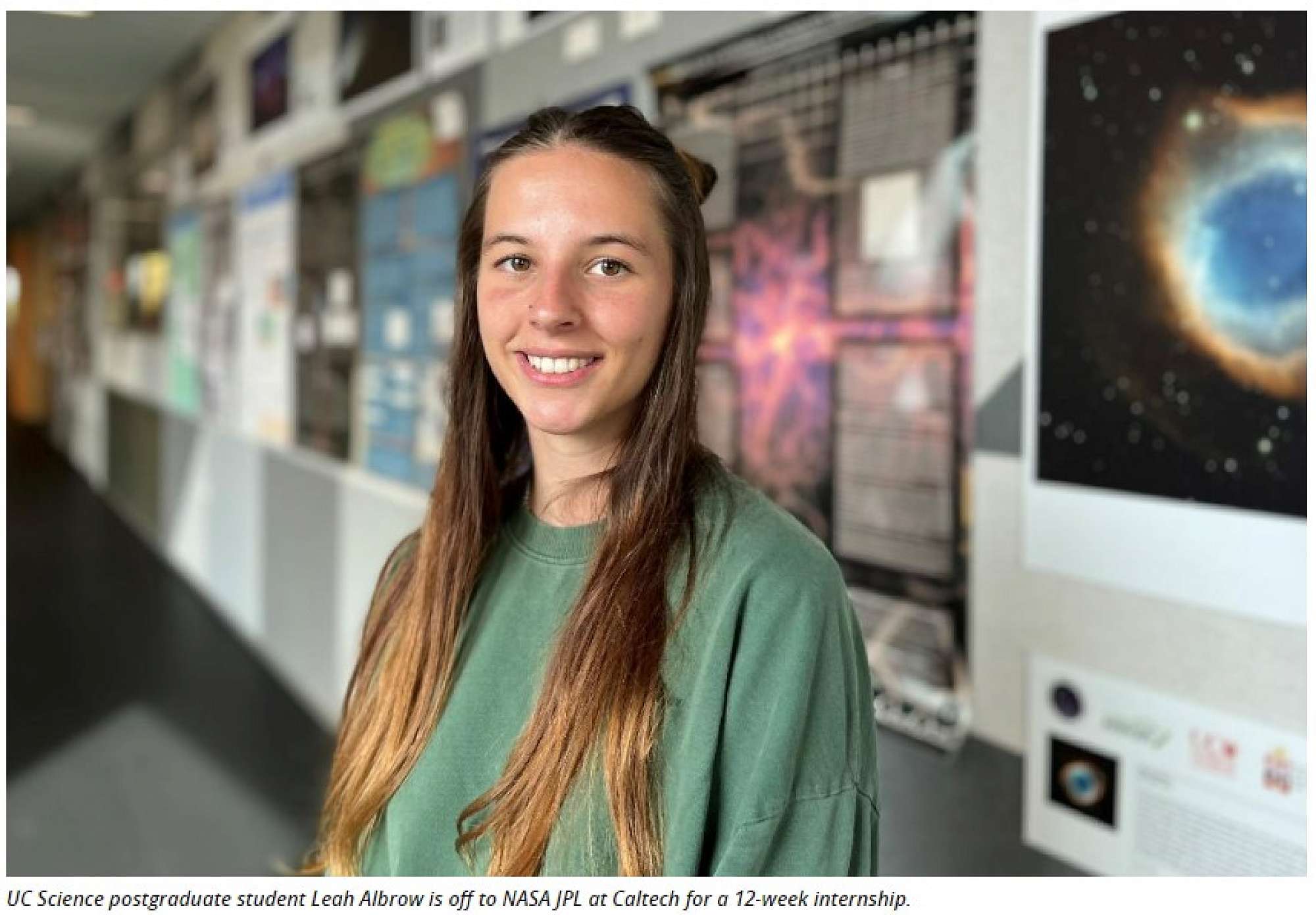It was great to see two Alumni students celebrated by the University of Canterbury. Leah Albrow is one of five New Zealand postgraduate students selected by NASA and the New Zealand Space Agency for an internship at NASA’s Jet Propulsion Laboratory (JPL).
