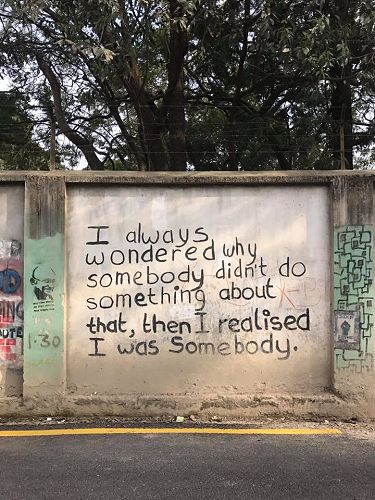 A piece of street art we came across in Nepal sums it up pretty well by saying, ‘I always wondered why somebody didn’t do something about that, then I realised I was somebody.’