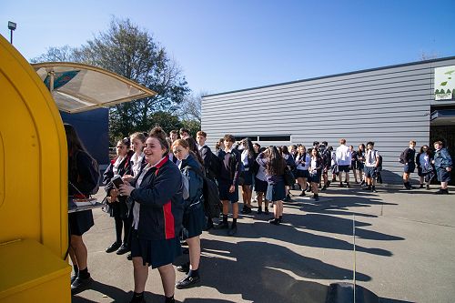 Also, outside the hall were standing food trucks! The lines were massive and some students waited for the entire lunchtime to buy something, that’s how good the food was! We were treated to a very popular Indian food truck and as well as an Ice Cream truck, one that sold drinks and Souvlakis and one that sold donuts. It was great to see the Riccarton students celebrating our school's cultural diversity through food. Having a day like this is a very good opportunity to get to know different kinds of food from all around the world, a great initiative as food connects people and is a very big part of our lives and our cultures.