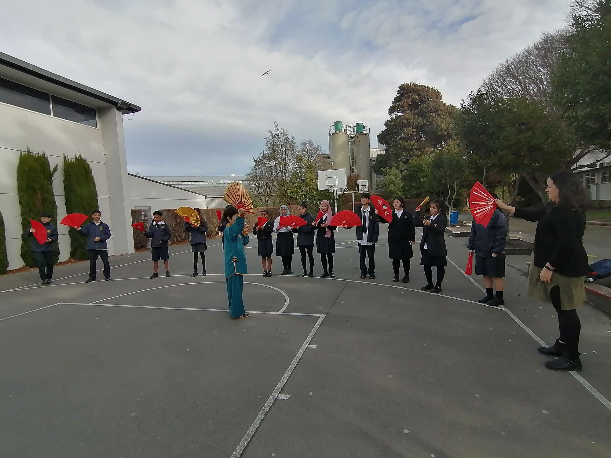 The Chinese, Fijian and Niuean Language Weeks were celebrated in school with students, parents, and staff community. A number of activities were organised, highlights including student presentations for staff, traditional performances with dance, music, poetry and instruments, wearing cultural clothing, and shared kai. Our Pasifika studies teachers, Milika and Poe, organised the Fijian and Niuean Language Week activities following the cultural guidelines, and took this opportunity to practise and celebrate the respective languages. Along with our school’s celebration, the Chinese dancers got an invitation to perform at the CCC libraries, which was a fantastic experience for the team.