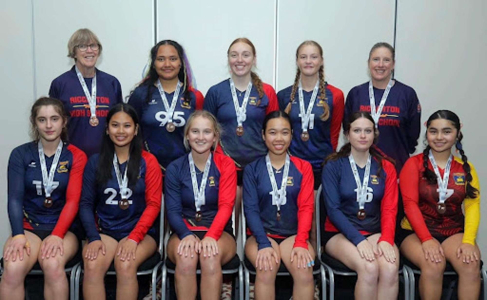 A highlight for the team was getting to play on the Main court on Wednesday night when the court they were supposed to be on was running over 2 hours late. The game was supposed to start at 8.00pm but with it looking like it would start sometime after 10pm, the girls were fizzing and really excited to have the opportunity to play on the centre court and comfortably beat Long Bay College. Thursday saw our girls make the semis of division 4, playing Wellington East Girls. This match went to 5 sets and while our girls played extremely well, with the sets being very close, Wellington East Girls eventually took the win. The defeat meant RHS were on duty that night even though they had an early start the following morning for the bronze medal playoff. Our girls were determined to take a medal home and did they ever, beating Marlborough Girls 3-1.