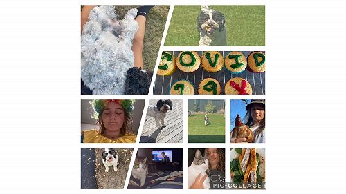 Junior students were busy with various outdoor art making including creating messages of hope art works, for people to see when they passed their house, land art - making mini art pieces from their natural surroundings and re creating famous paintings in photograph form, with their own lockdown twist.