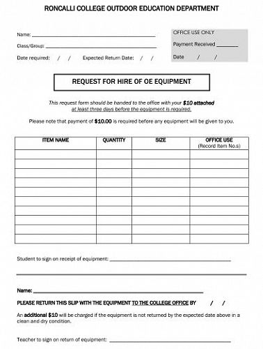 I have attached the gear list and gear request form that can also be downloaded from the College Website under the camps tab.