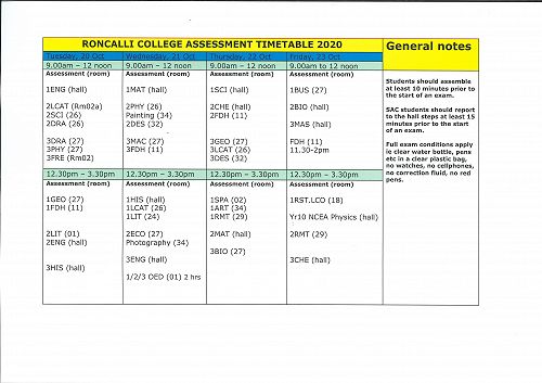 The Senior assessment timetable is attached for Tuesday 20 October to Friday 23 October.