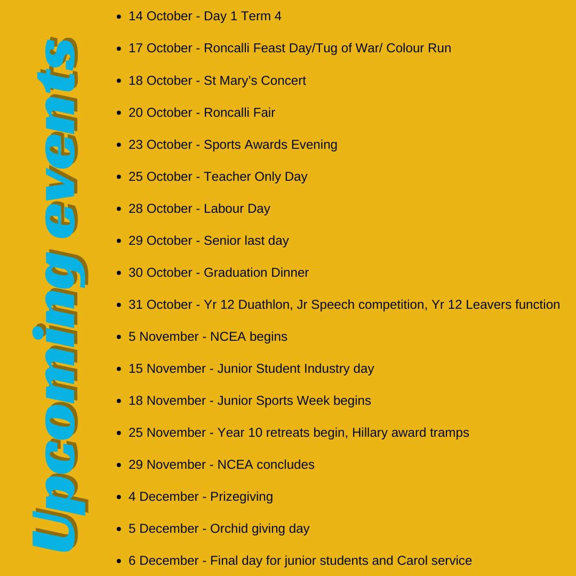 Calendar of Upcoming Events