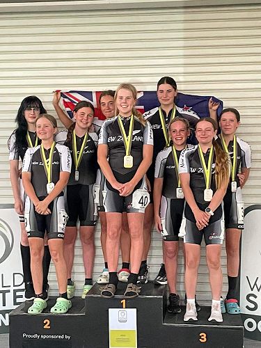Emily Thompson = Gold in the 5km relay, bronze in the 15km Elimination, Bronze in the 10km Points, Bronze in the 42km Marathon.