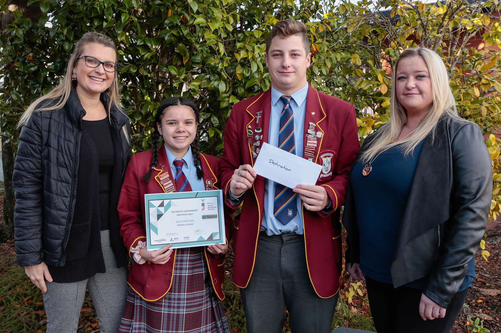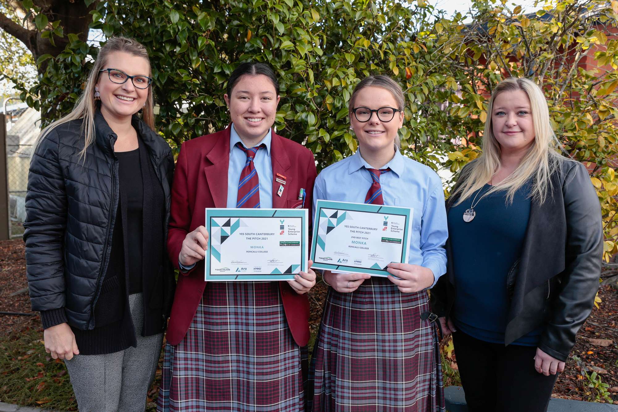 On Friday morning the 4th of June 2021 Stacey Darrell, Regional Coordinator of the Young Enterprise Scheme South Canterbury awarded Destination and Monka prize money for their recent Pitch at the Ara.